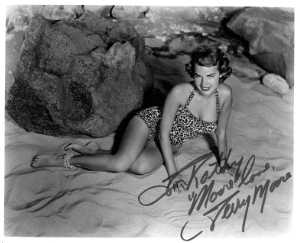 What millionaire wouldn't be enchanted by the pretty and curvaceous Terry Moore. A fetching pinup in a winter getup and leopard print swimsuit.